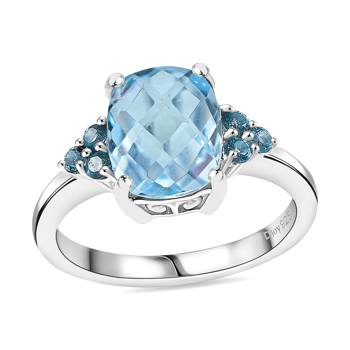 Sky Blue Topaz and Signity Pariaba Topaz 3.90 ctw Ring in Platinum Over Sterling Silver (Size 6.0)