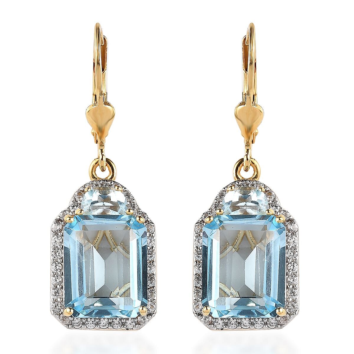 Sky Blue Topaz and White Zircon Lever Back Earrings in Vermeil Yellow Gold Over Sterling Silver 13.50 ctw