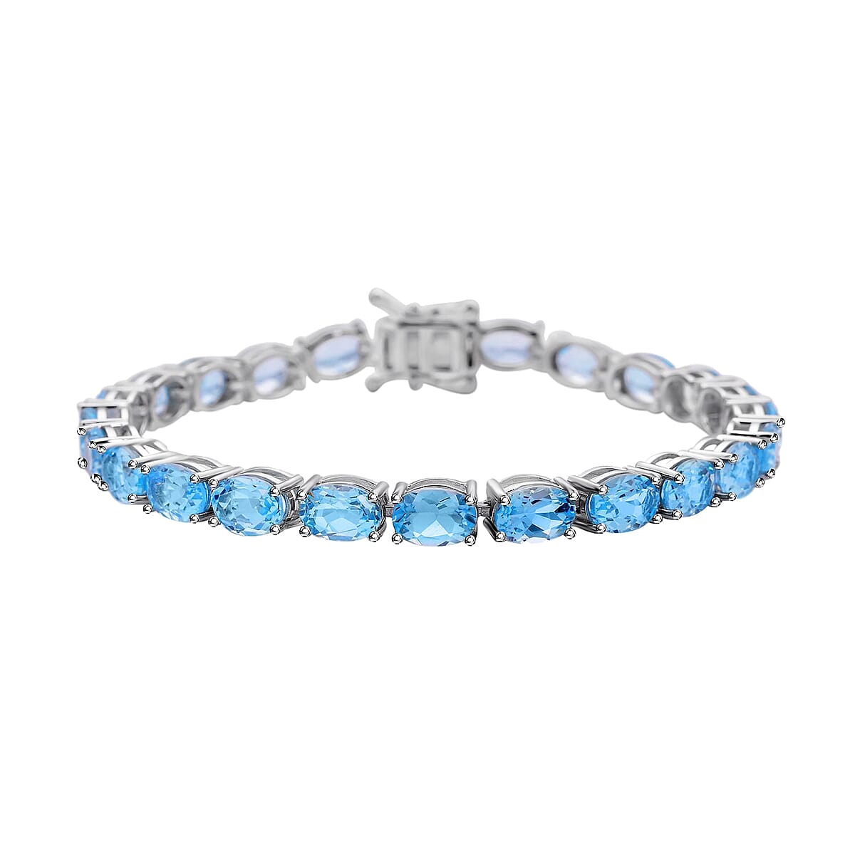 Sky Blue Topaz Bracelet in Rhodium Over Sterling Silver, Tennis Bracelet, Silver Tennis, Gifts For Her (7.25 In) 8.50 Grams 21.60 ctw