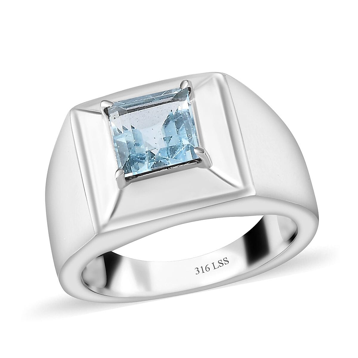 Sky Blue Topaz Men's Ring in Stainless Steel (Size 11.0) 1.85 ctw
