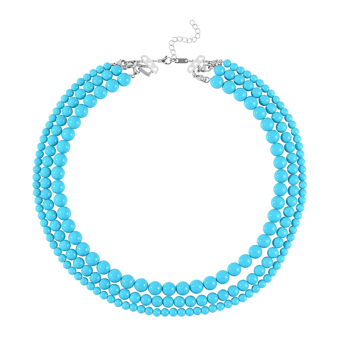 Sleeping Beauty Color Shell Pearl 3 Row Necklace 18-20 Inches in Stainless Steel