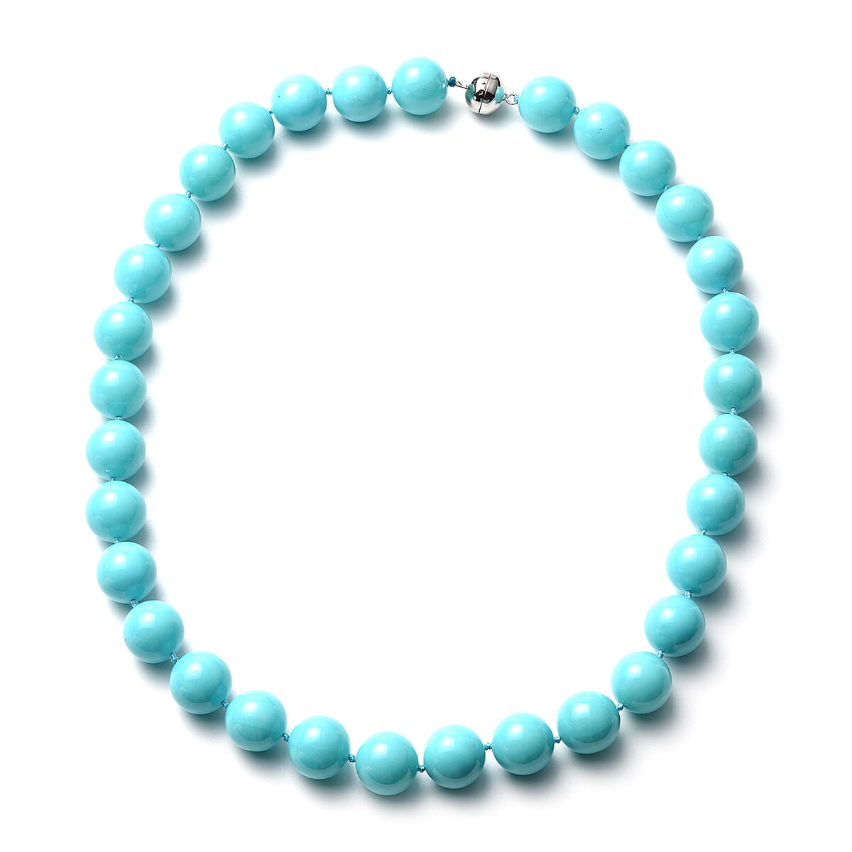 Sleeping Beauty Color Shell Pearl Beaded Necklace 22 Inches With Magnetic Lock in Sterling Silver