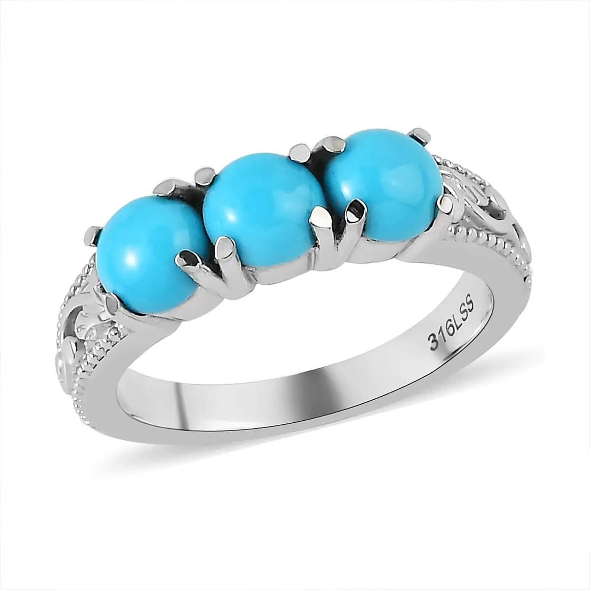 Sleeping Beauty Turquoise 3 Stone Ring in Stainless Steel (Size 10.0) 1.50 ctw