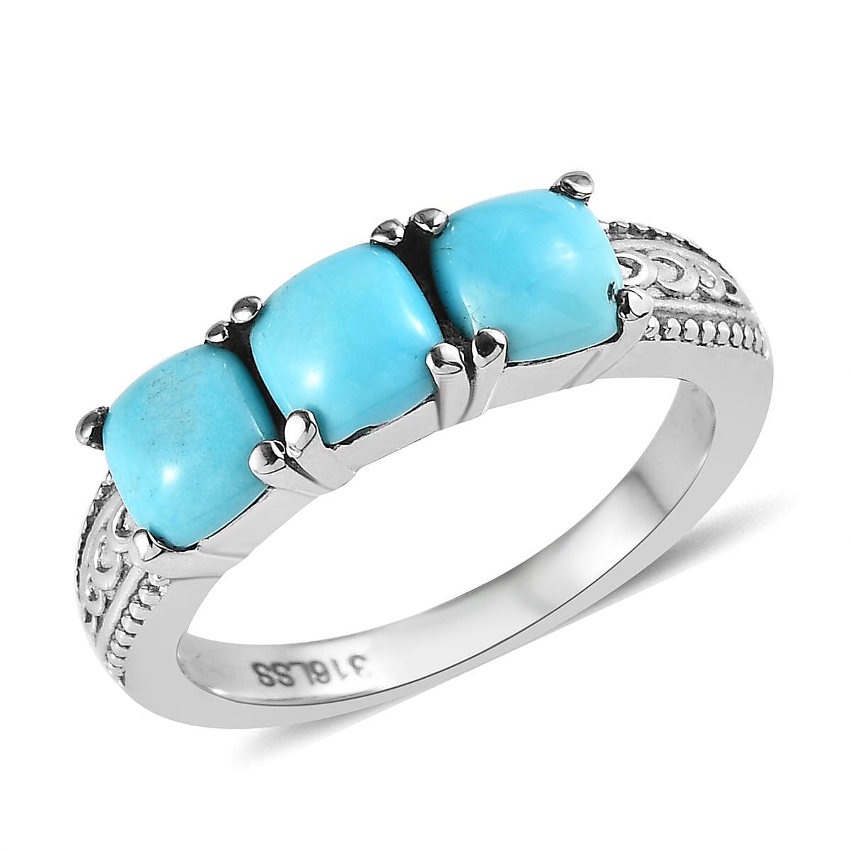 Sleeping Beauty Turquoise 3 Stone Ring in Stainless Steel (Size 10.0) 1.70 ctw