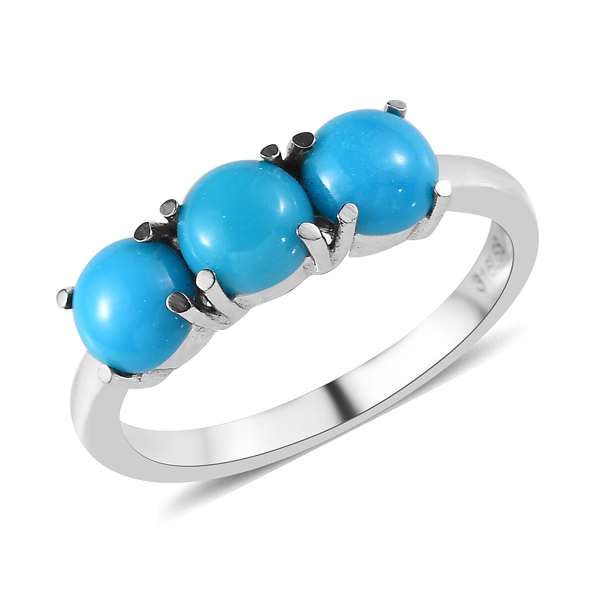 Sleeping Beauty Turquoise 3 Stone Ring in Stainless Steel (Size 5.0) 1.25 ctw
