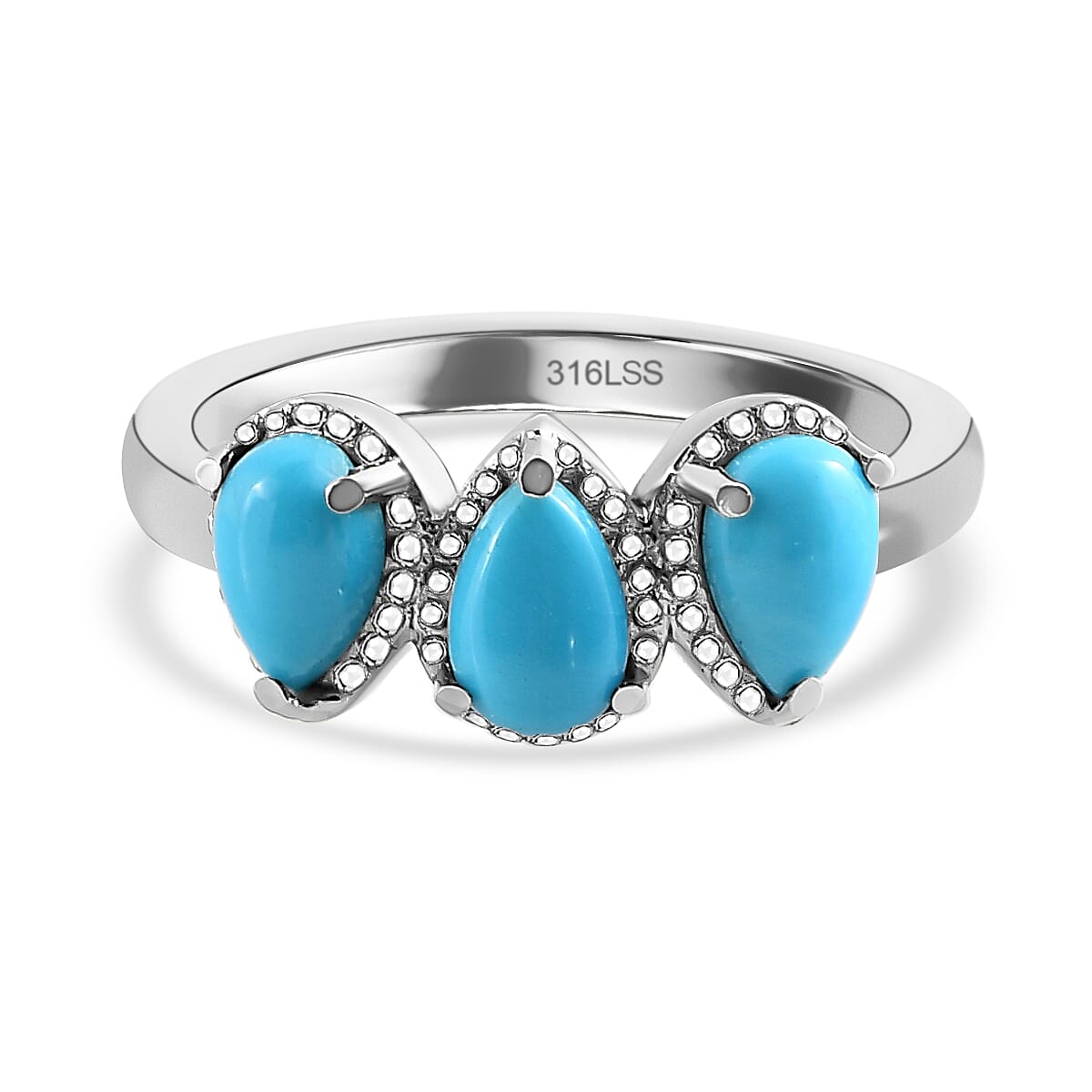 Sleeping Beauty Turquoise 3 Stone Ring in Stainless Steel (Size 8.0) 1.25 ctw