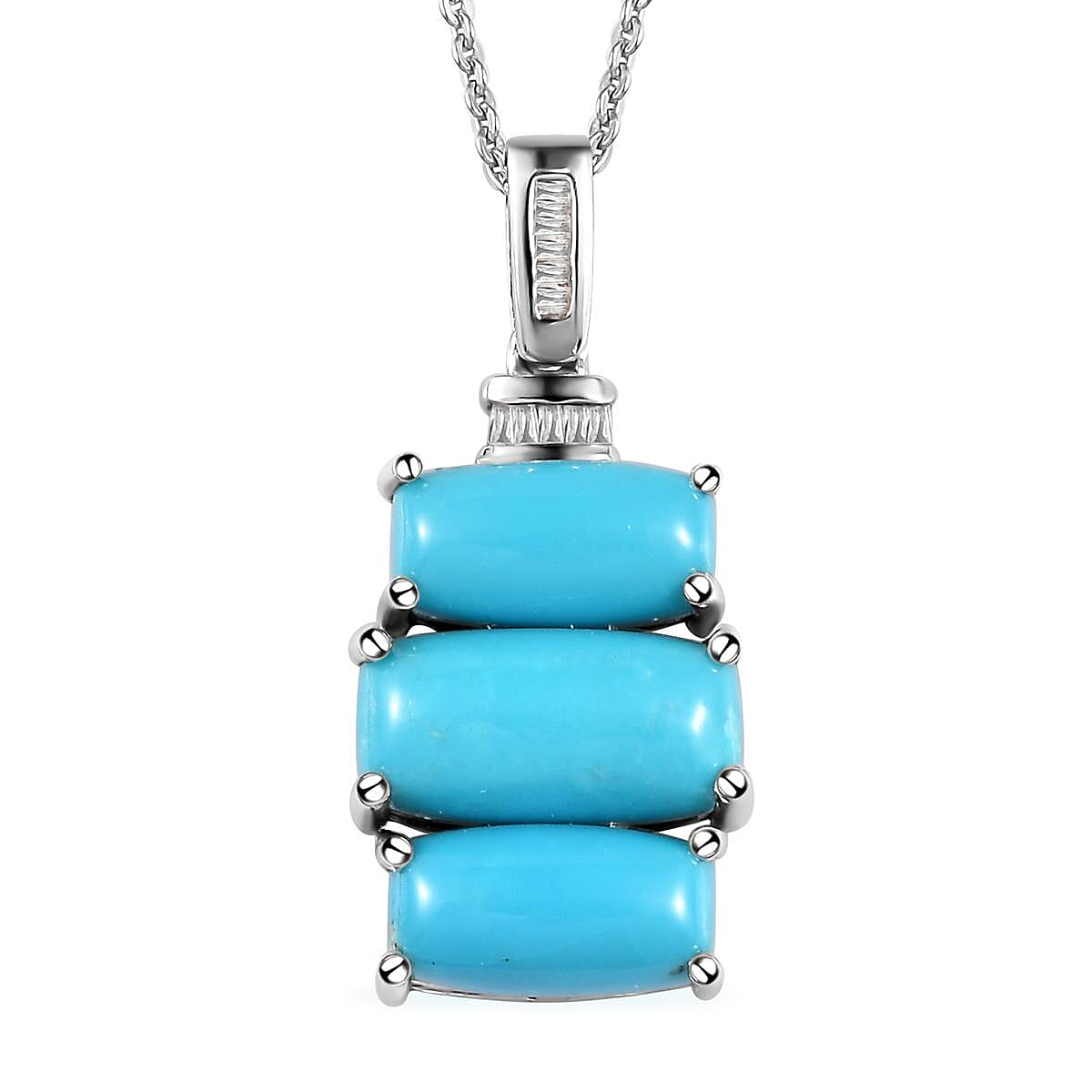 Sleeping Beauty Turquoise and Diamond Pendant Necklace 20 Inches in Platinum Over Sterling Silver 5.20 ctw