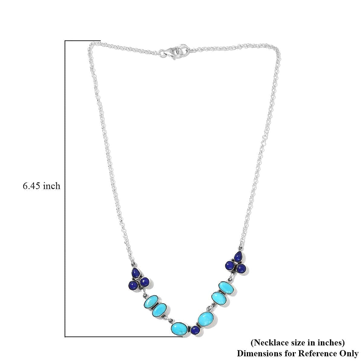 Level up your classic style with this gorgeous necklace styled with Natural Arizona Sleeping Beauty turquoise. Creatively crafted silver stations are studded with bezel set Lapis Lazuli gemstones. The artistically crafted design of this necklace creates an intriguing shine.