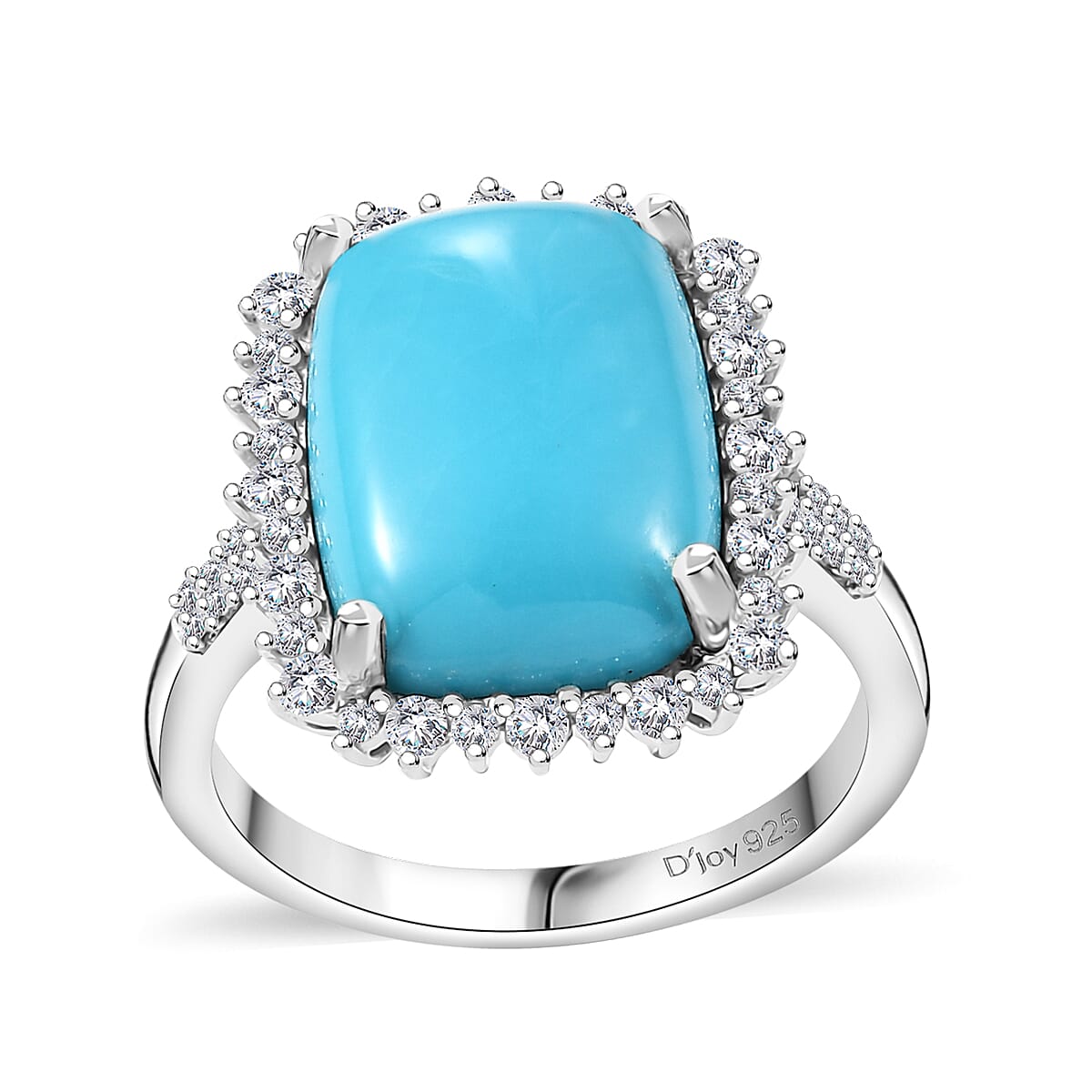 Sleeping Beauty Turquoise and Moissanite 5.85 ctw Sunburst Ring in Rhodium Over Sterling Silver (Size 10.0)