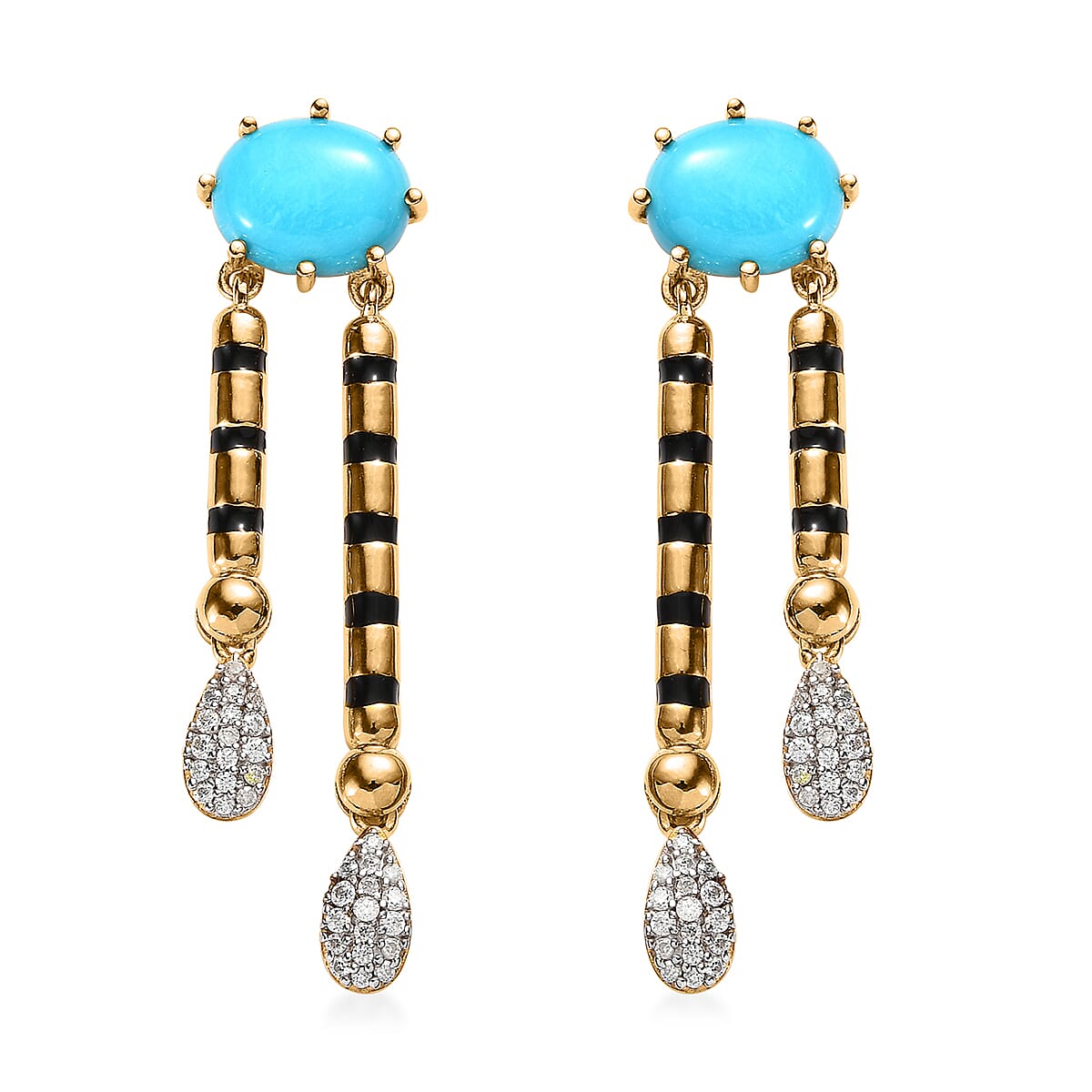 Sleeping Beauty Turquoise and Moissanite Dangling Earrings in Vermeil Yellow Gold Over Sterling Silver 4.85 ctw