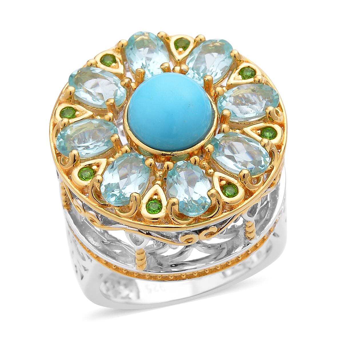 Sleeping Beauty Turquoise and Multi Gemstone Carousel Ring in Vermeil Yellow Gold and Platinum Over Sterling Silver (Size 6.0) 5.75 ctw