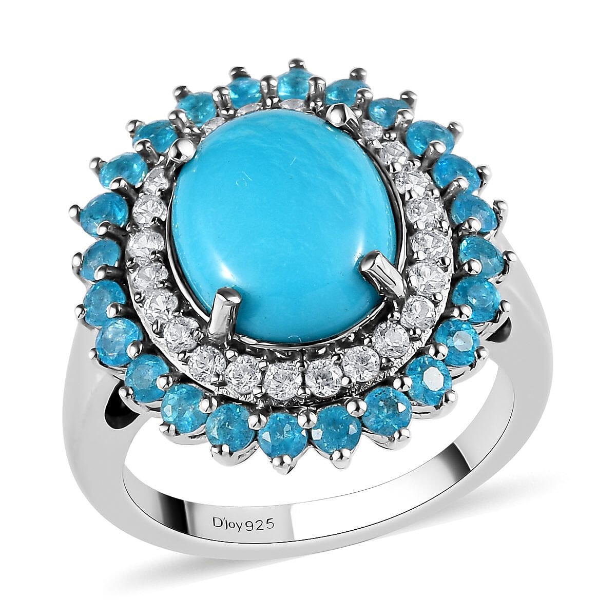 Sleeping Beauty Turquoise and Multi Gemstone Double Halo Ring in Platinum Over Sterling Silver (Size 7.0) 4.50 ctw