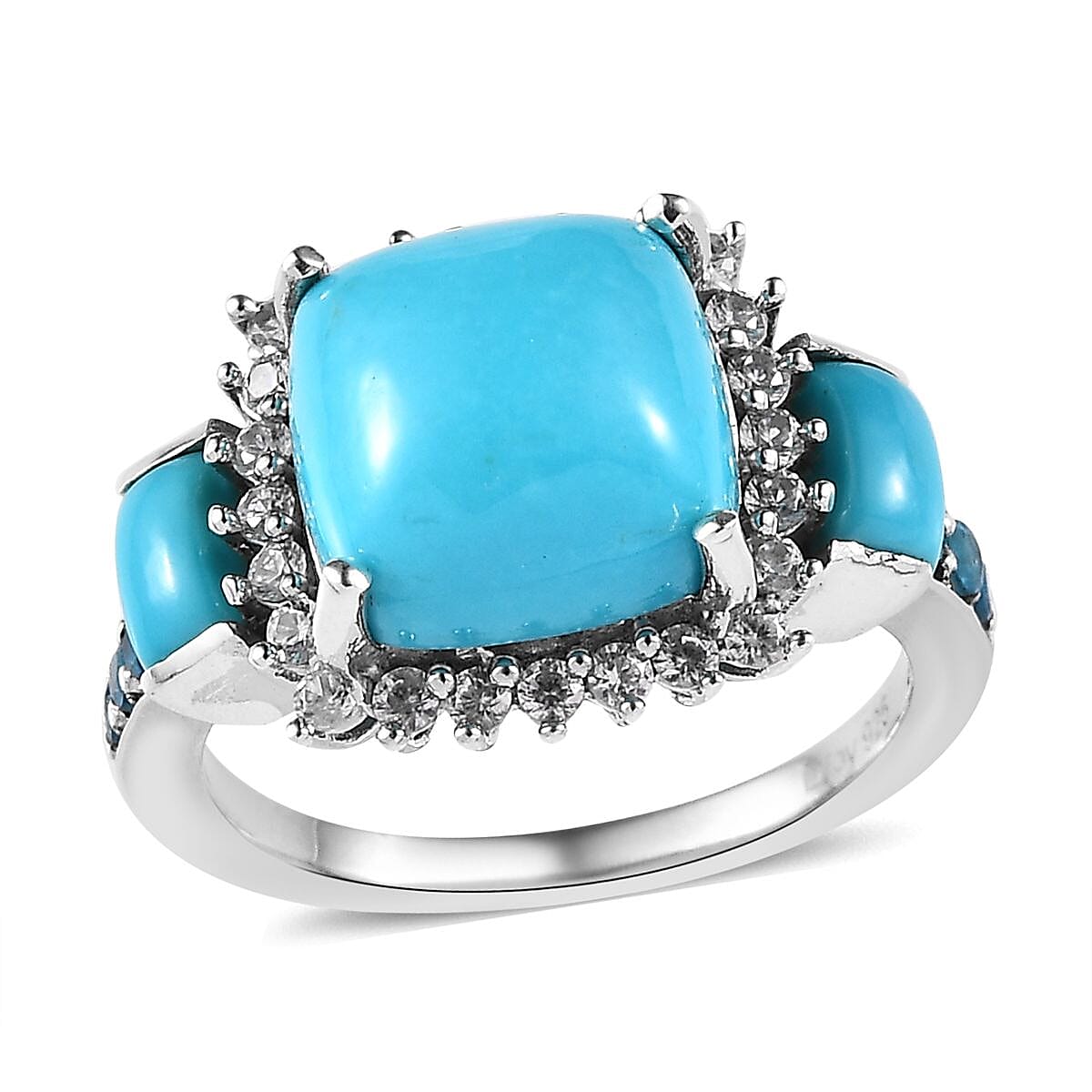 Sleeping Beauty Turquoise and Multi Gemstone Halo Ring in Platinum Over Sterling Silver (Size 10.0) 5.25 ctw