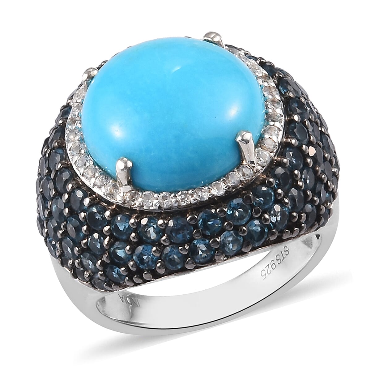 Sleeping Beauty Turquoise and Multi Gemstone Ring in Platinum Over Sterling Silver (Size 5.0) 14.65 ctw