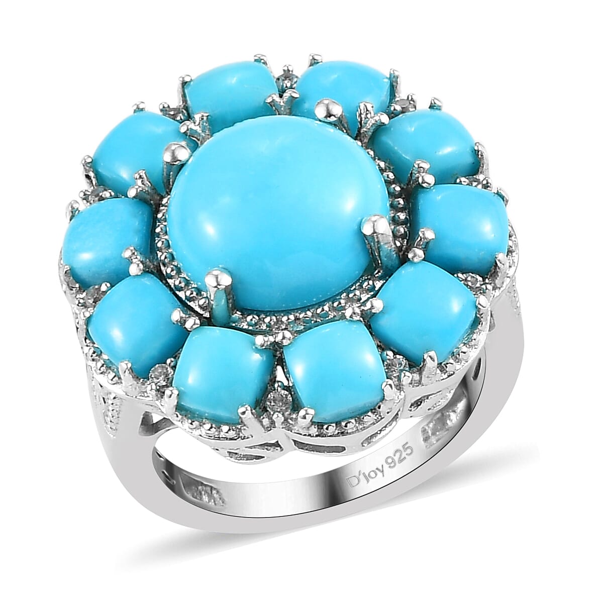 Sleeping Beauty Turquoise and Natural White Zircon Floral Ring in Platinum Over Sterling Silver (Size 6.0) 6.60 ctw