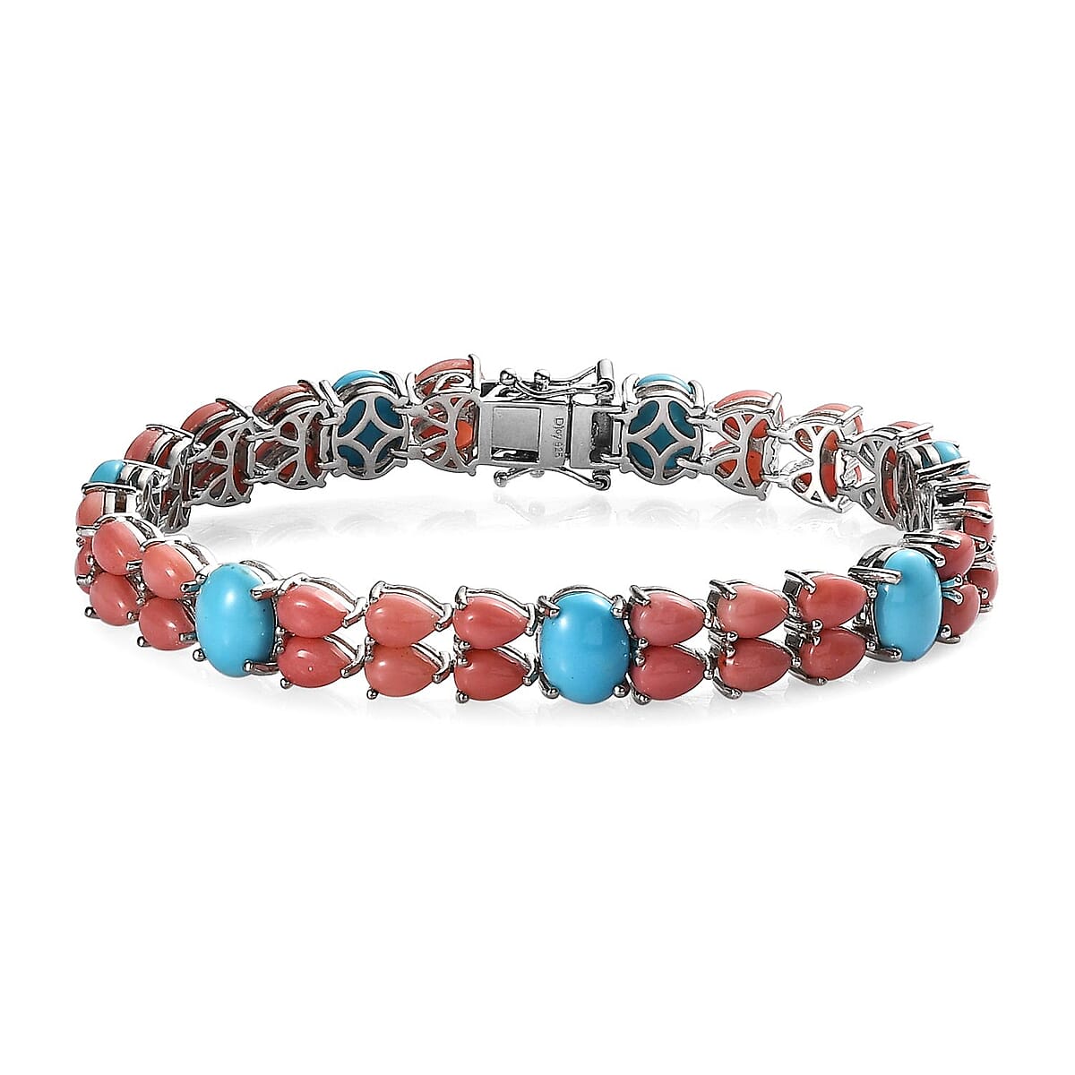 Sleeping Beauty Turquoise and Oregon Peach Opal Bracelet in Platinum Over Sterling Silver (7.25 In) 22.85 ctw
