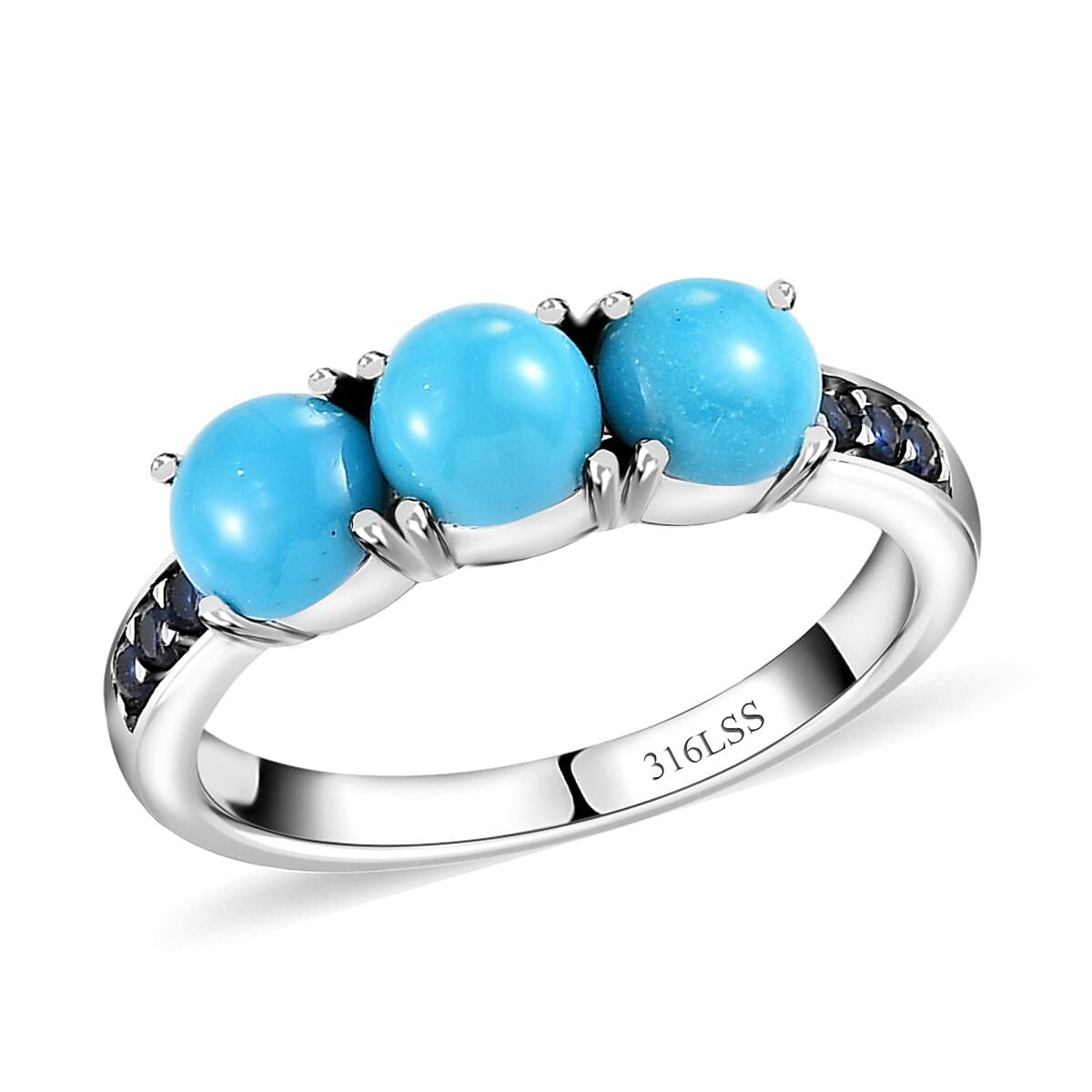 Sleeping Beauty Turquoise and Simulated Blue Diamond 1.60 ctw Ring in Stainless Steel (Size 7.0)