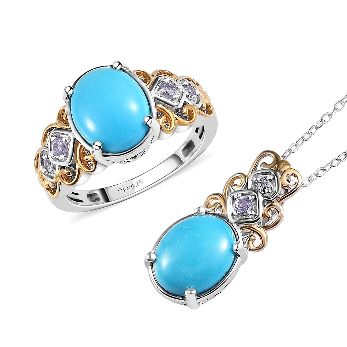 Sleeping Beauty Turquoise and Tanzanite Ring (Size 7.0) and Pendant Necklace 20In in Vermeil YG and Platinum Over Sterling Silver 4.10 ctw