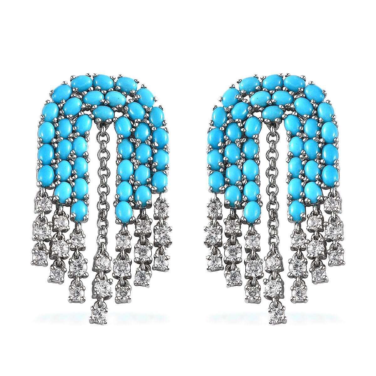 Sleeping Beauty Turquoise and White Zircon Chandelier Statement Earrings in Platinum Over Sterling Silver 17.35 ctw