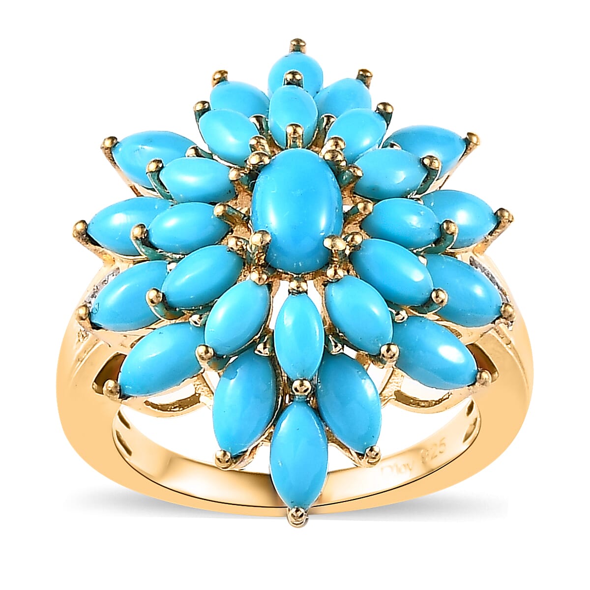 Sleeping Beauty Turquoise and White Zircon Floral Ring in Vermeil Yellow Gold Over Sterling Silver (Size 8.0) 4.00 ctw