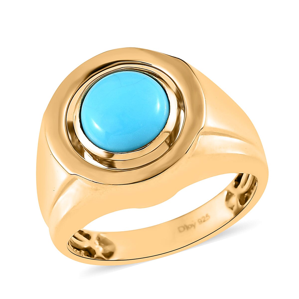 Sleeping Beauty Turquoise and White Zircon Reversible Men's Ring in Vermeil Yellow Gold Over Sterling Silver 3.25 ctw