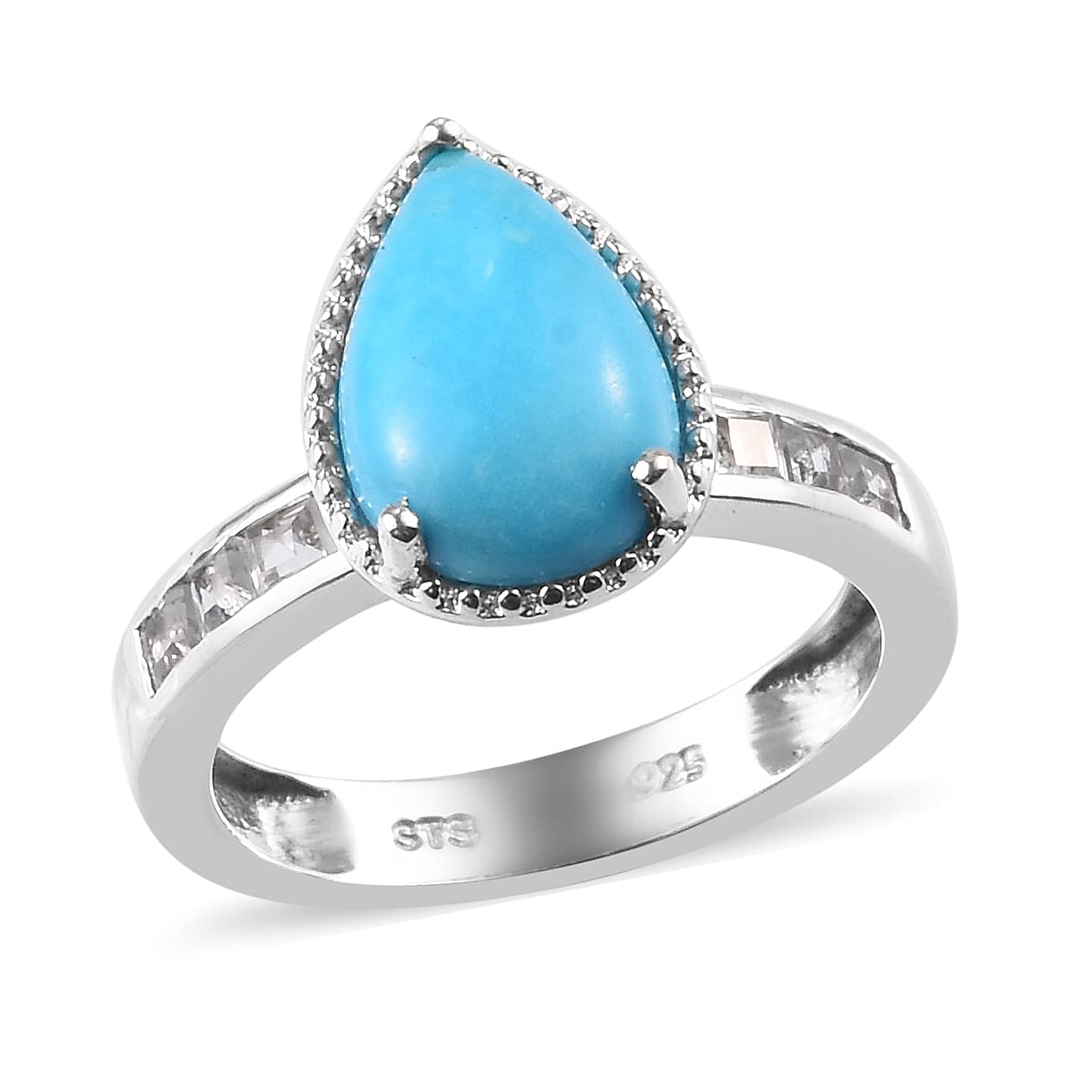 Sleeping Beauty Turquoise and White Zircon Ring in Platinum Over Sterling Silver (Size 6.0) 3.25 ctw