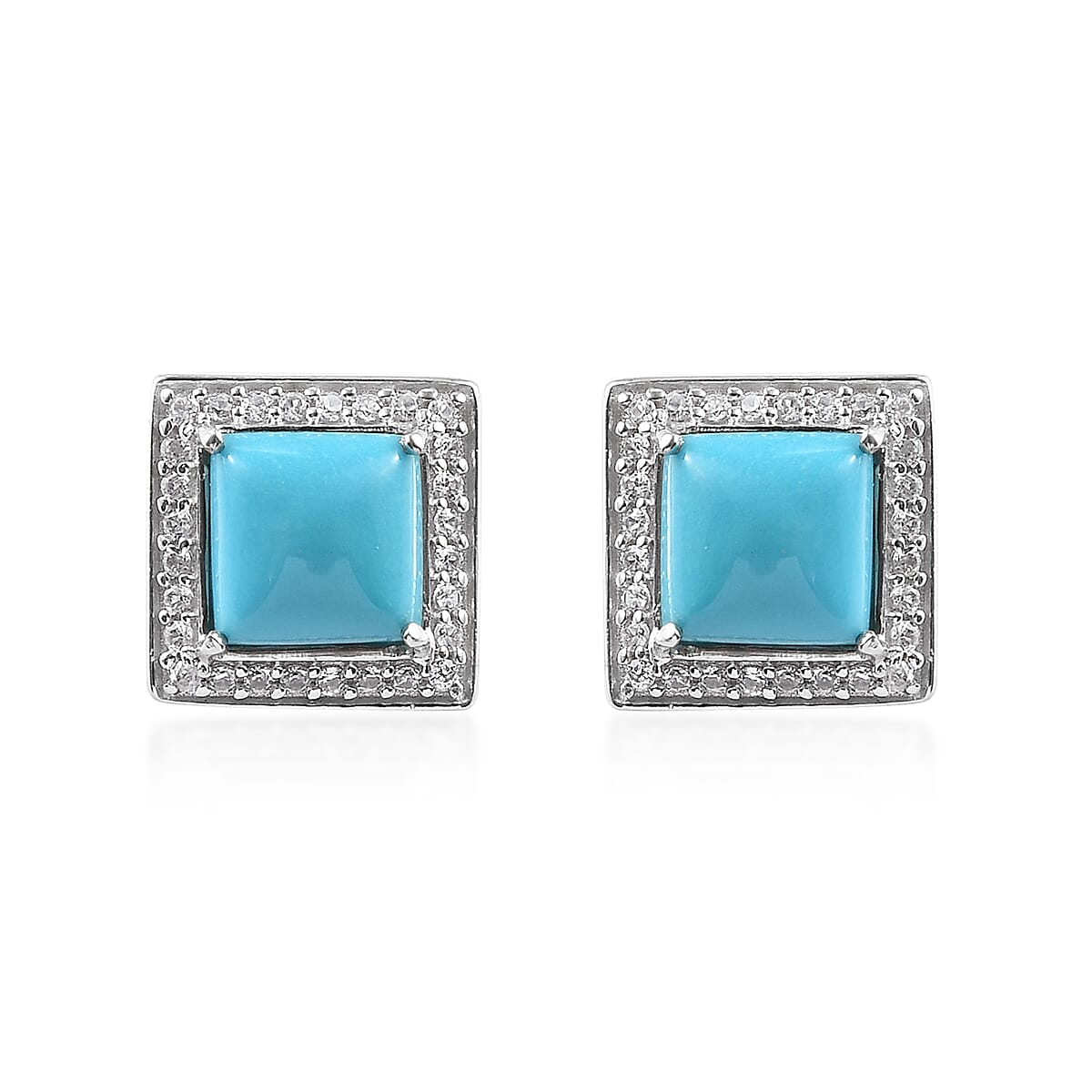 Sleeping Beauty Turquoise and Zircon Earrings in Platinum Over Sterling Silver 5.35 ctw