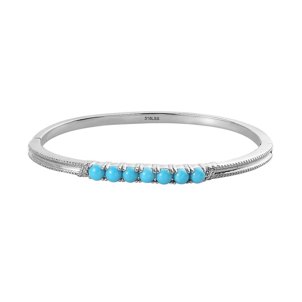 Sleeping Beauty Turquoise Bangle Bracelet in Stainless Steel (6.50 In) 2.15 ctw