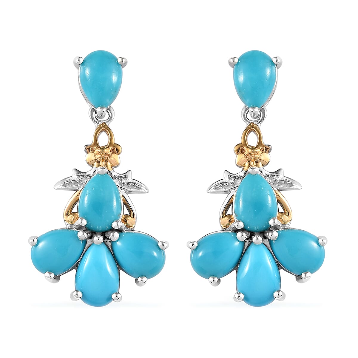 Sleeping Beauty Turquoise Dangling Earrings in Vermeil YG and Platinum Over Sterling Silver 6.50 ctw