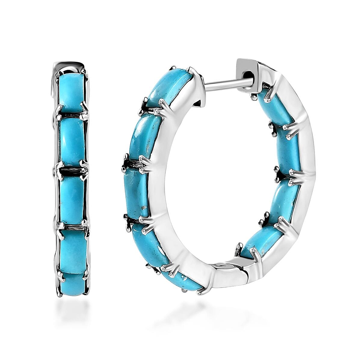 Sleeping Beauty Turquoise Hoop Earrings in Platinum Over Sterling Silver 4.50 ctw