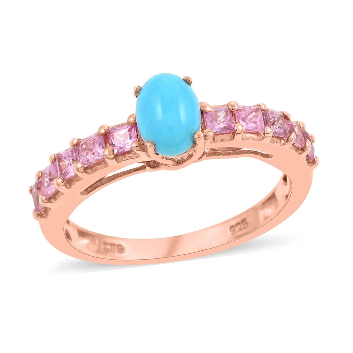 Sleeping Beauty Turquoise, Madagascar Pink Sapphire Ring in 14K RG Over Sterling Silver (Size 9) 1.15 ctw