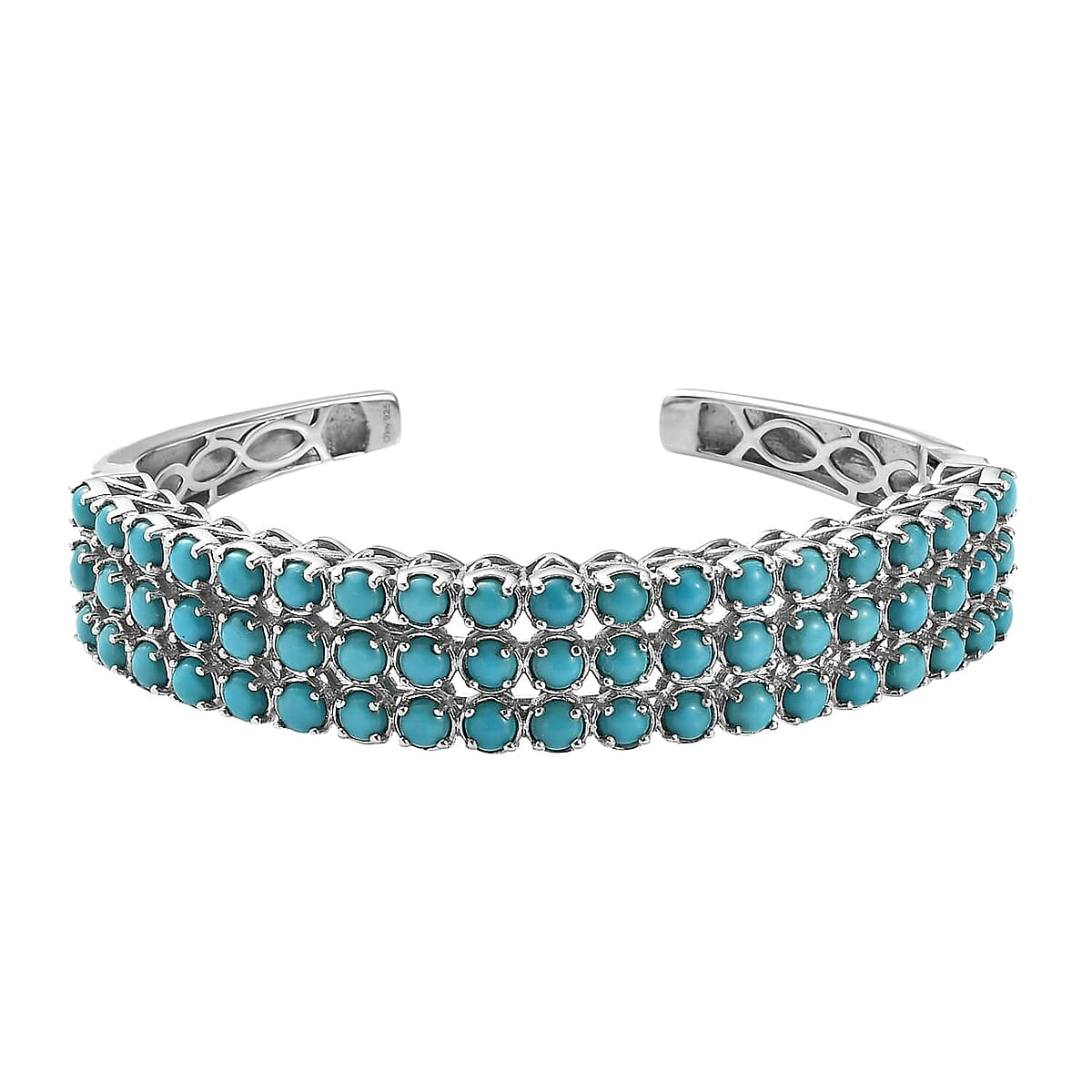 Sleeping Beauty Turquoise Multi Row Cuff Bracelet in Platinum Over Sterling Silver 14.90 ctw
