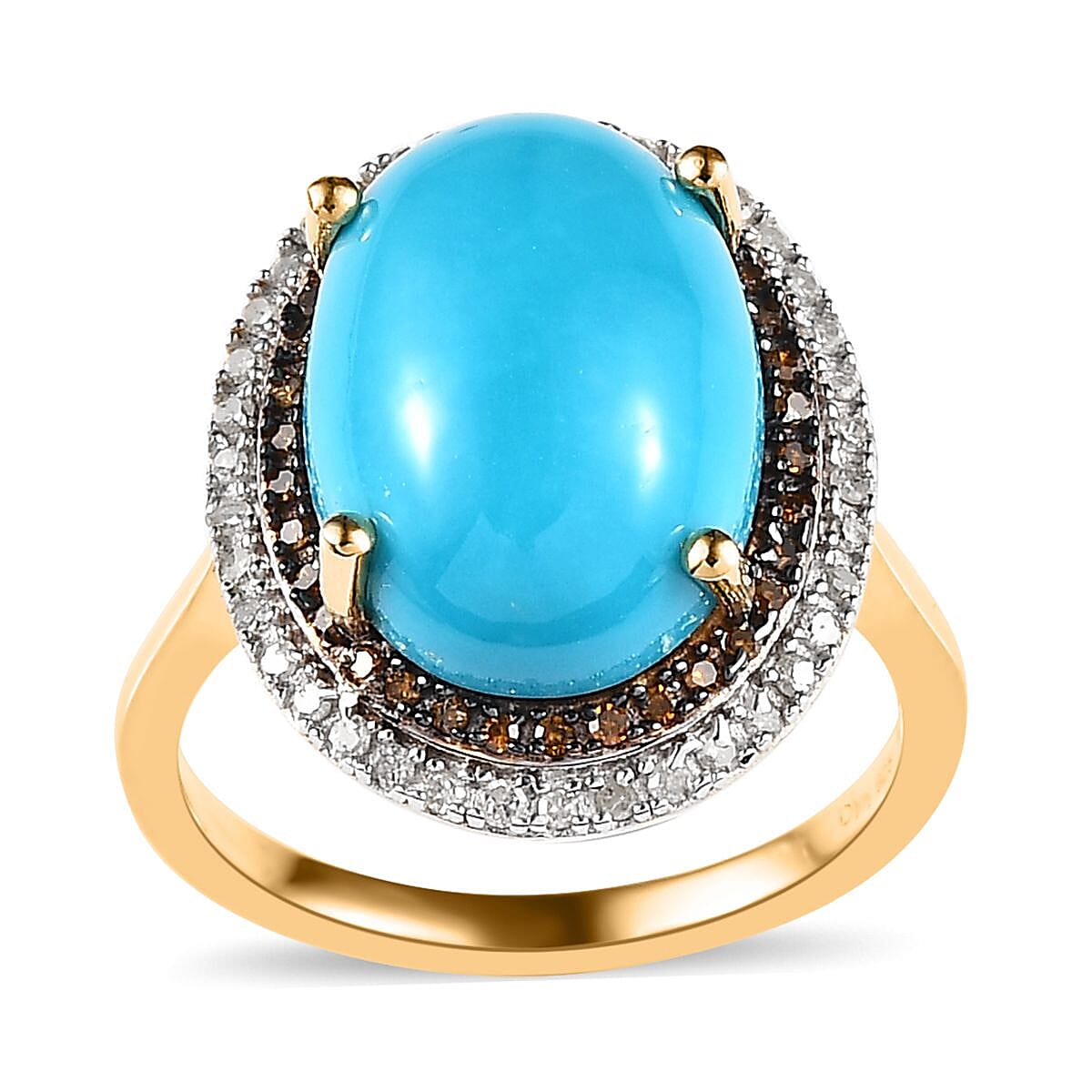 Sleeping Beauty Turquoise, Red and White Diamond Ring in Vermeil Yellow Gold Over Sterling Silver (Size 9.0) 5.60 ctw