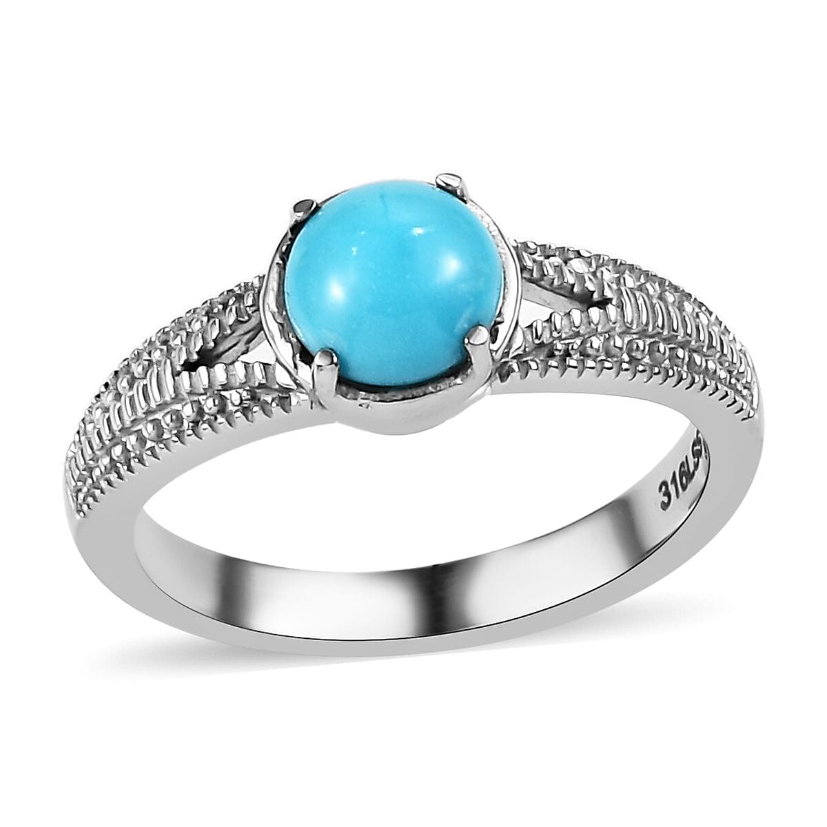 Sleeping Beauty Turquoise Solitaire Ring in Stainless Steel (Size 5.0) 0.85 ctw