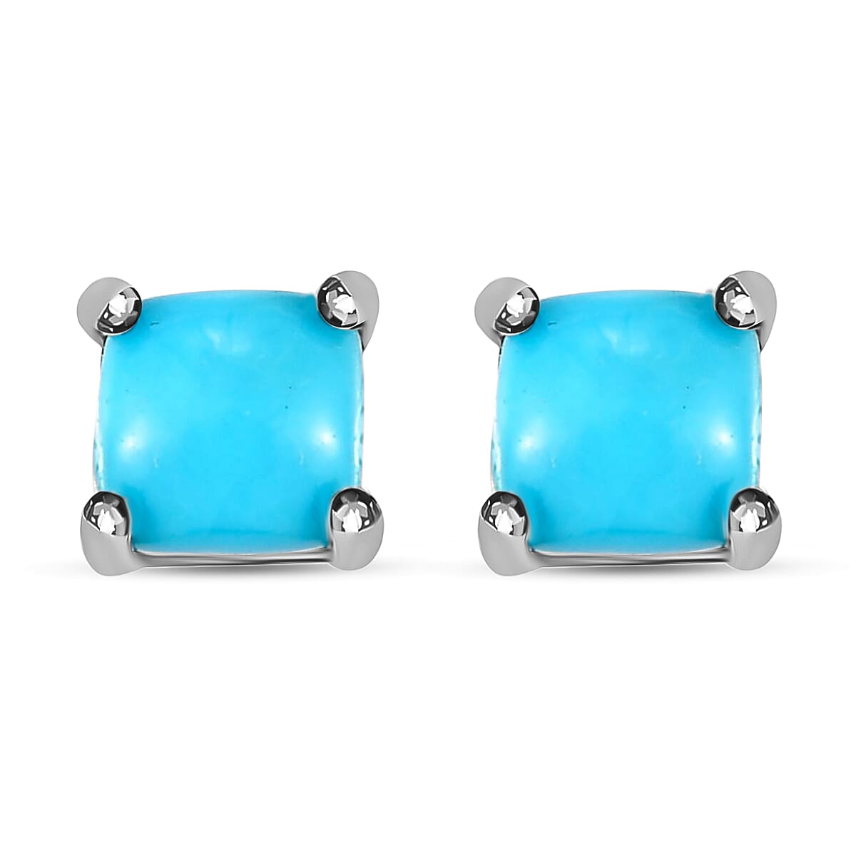 Sleeping Beauty Turquoise Solitaire Stud Earrings in Platinum Over Sterling Silver 0.75 ctw