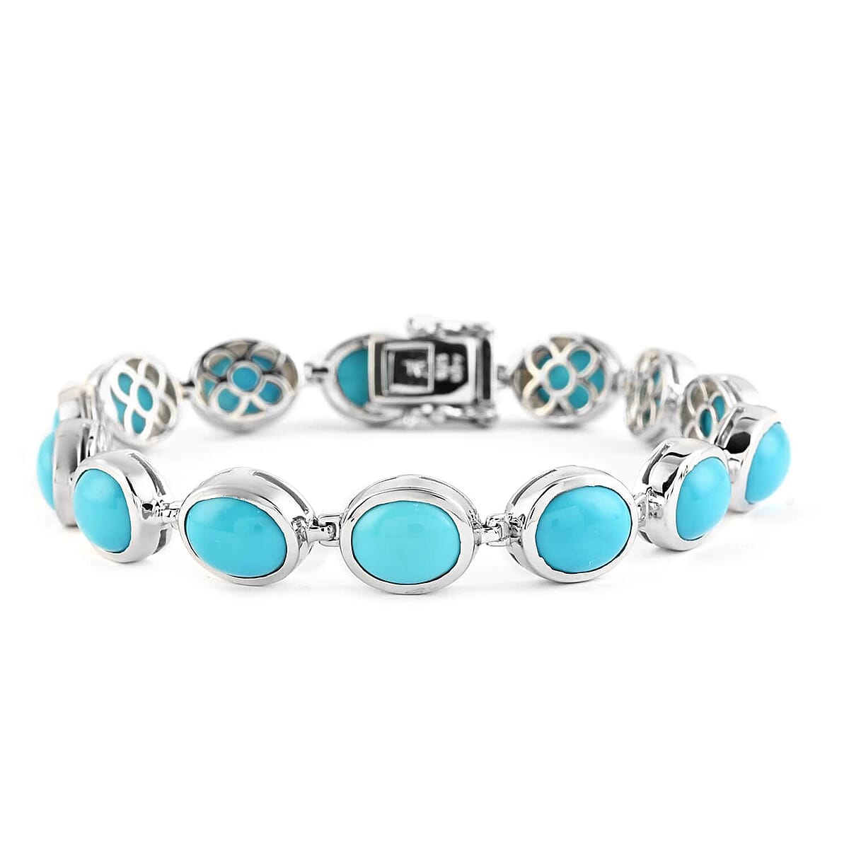 Sleeping Beauty Turquoise Station Bracelet in Platinum Over Sterling Silver (8.00 In) 34.30 ctw