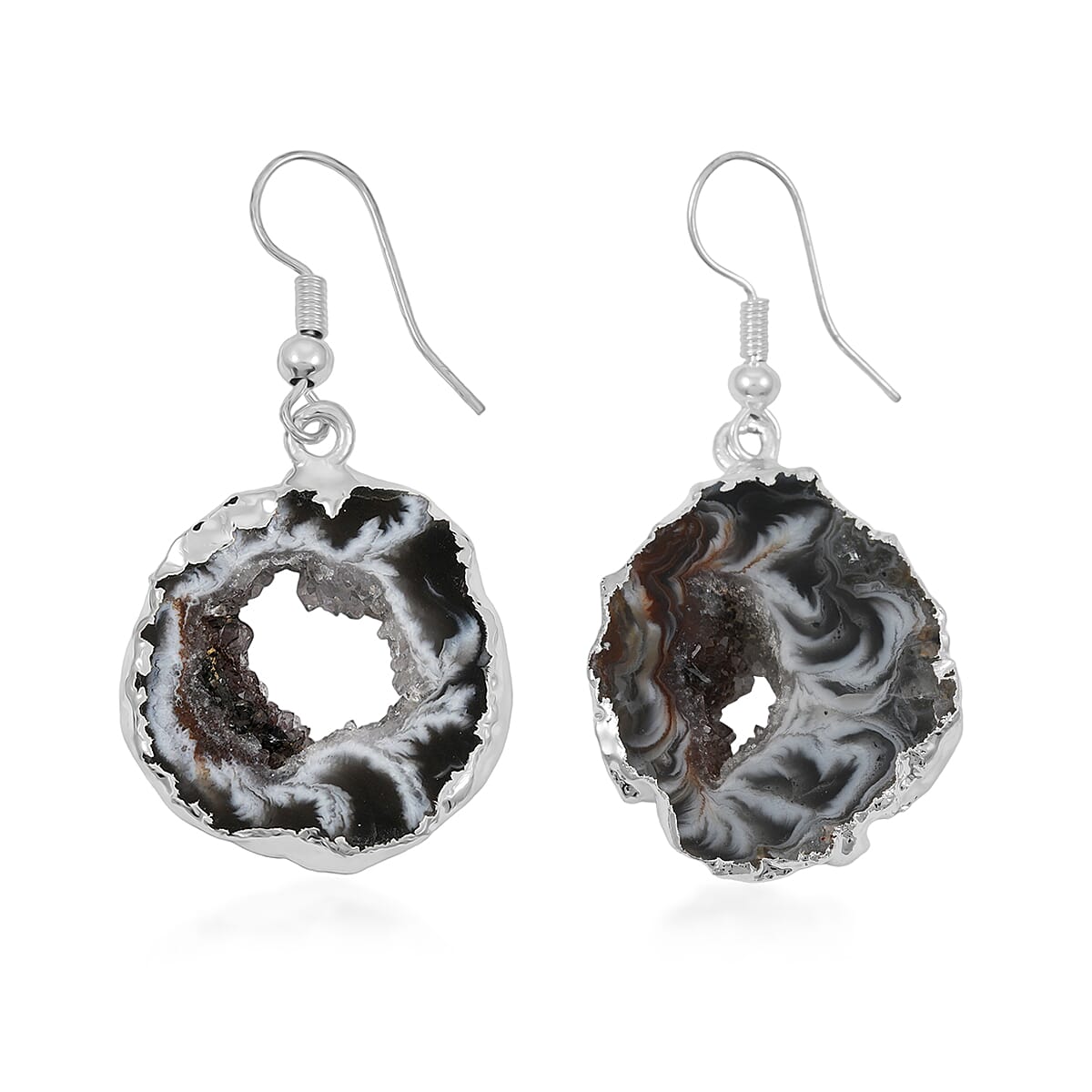 Slice Geode Amethyst 20.00 ctw Earrings in Silvertone