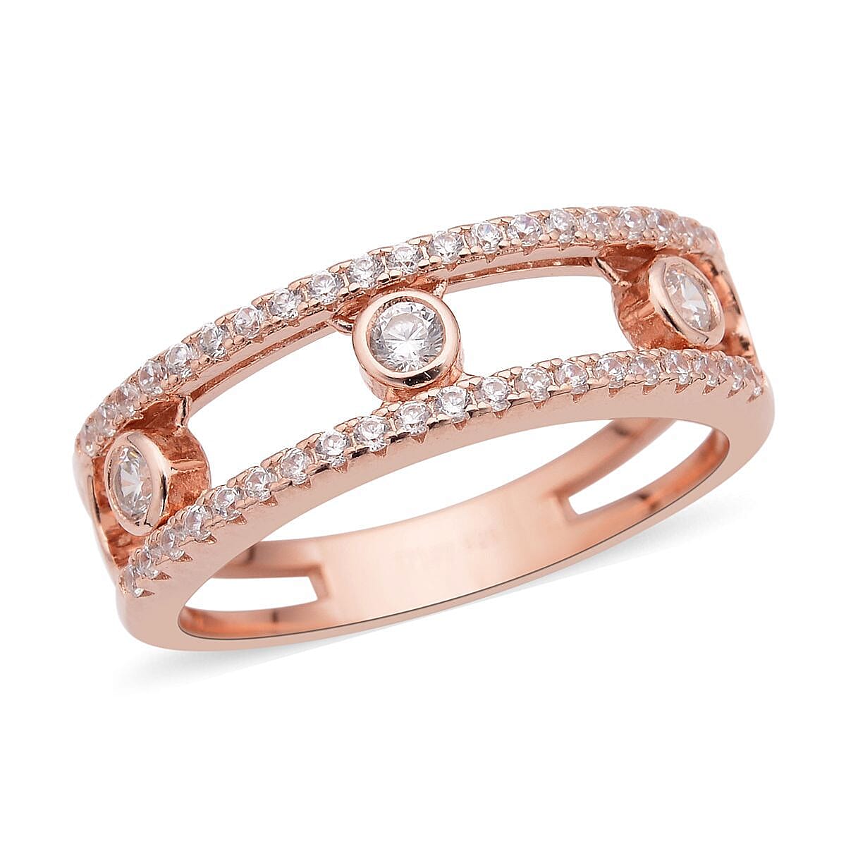 Sliding Simulated Diamond Ring in 14K Rose Gold Over Sterling Silver (Size 7.0) 0.85 ctw