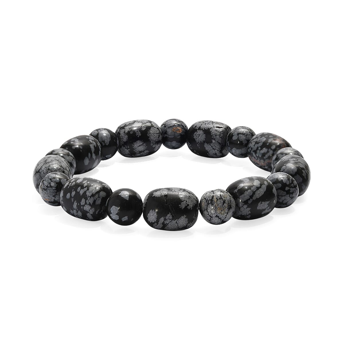 Snow Flake Obsidian 170.00 ctw Beaded Stretch Bracelet