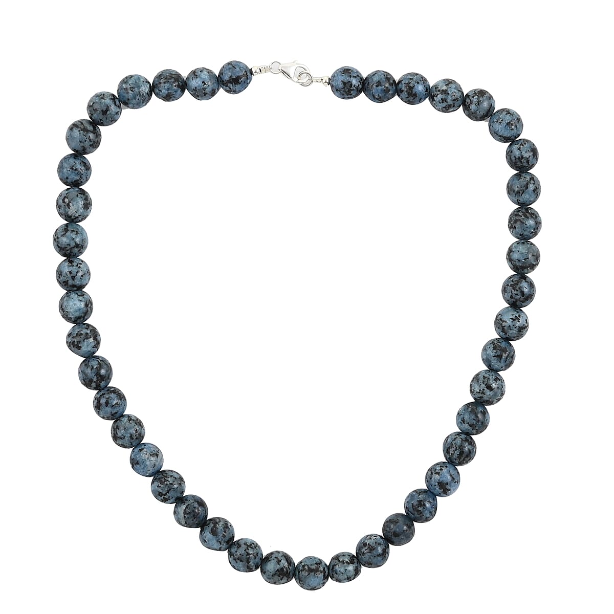 The genuine gemstone beads displaying beautiful and rare soothing dark blue hues make this snowflake jasper beaded necklace an unbeatable beauty. These snowflake jasper beads, arranged in a single-strand drill pattern, complement very well with each other's tones and provide an exceptional symmetrical appeal. A handset beaded necklace always adds elegance to your personality. This snowflake jasper beaded necklace allows its wearer to stand out with its refined fashion sense and be worn with any attire, be it classy or casual. Snowflake jasper is dark blue jasper with white inclusions that resemble snowflakes. This beaded necklace has an 18inches princess length and falls above the collarbone. This sterling silver necklace is secured with a lobster clasp.