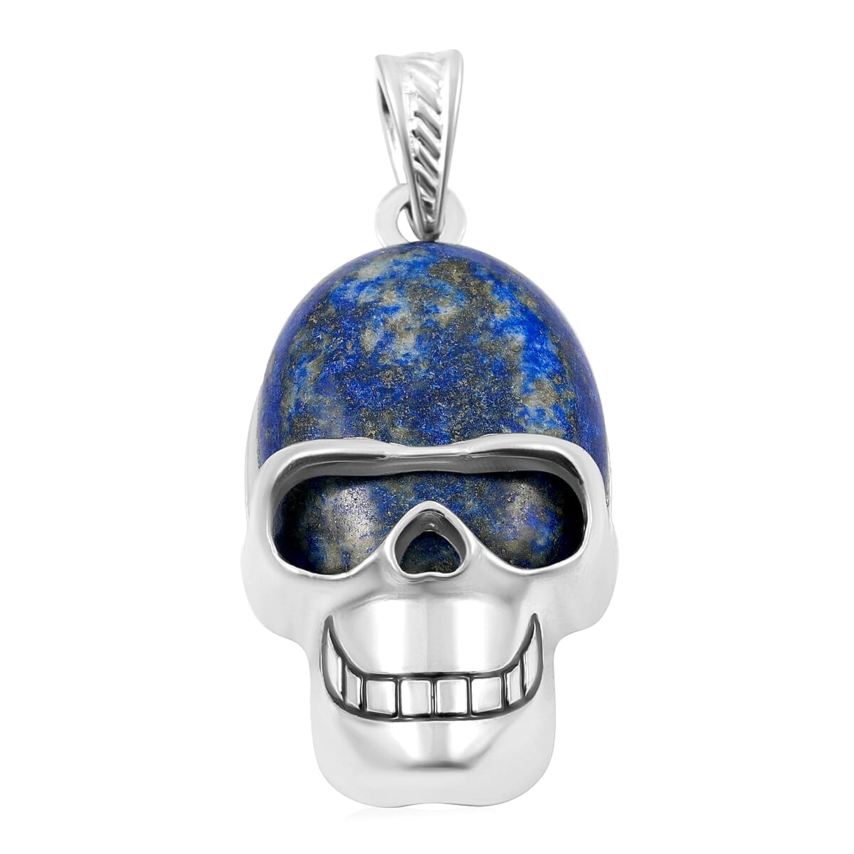Sodalite 15.75 ctw Skull Pendant in Silvertone with Stainless Steel Necklace 20 Inches
