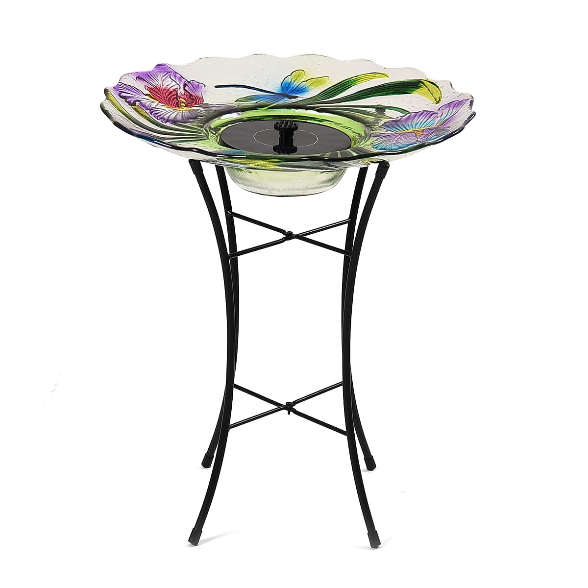 Solar Dragonfly Pattern Hand Painted Glass Bird Bath Water Fountain with Light