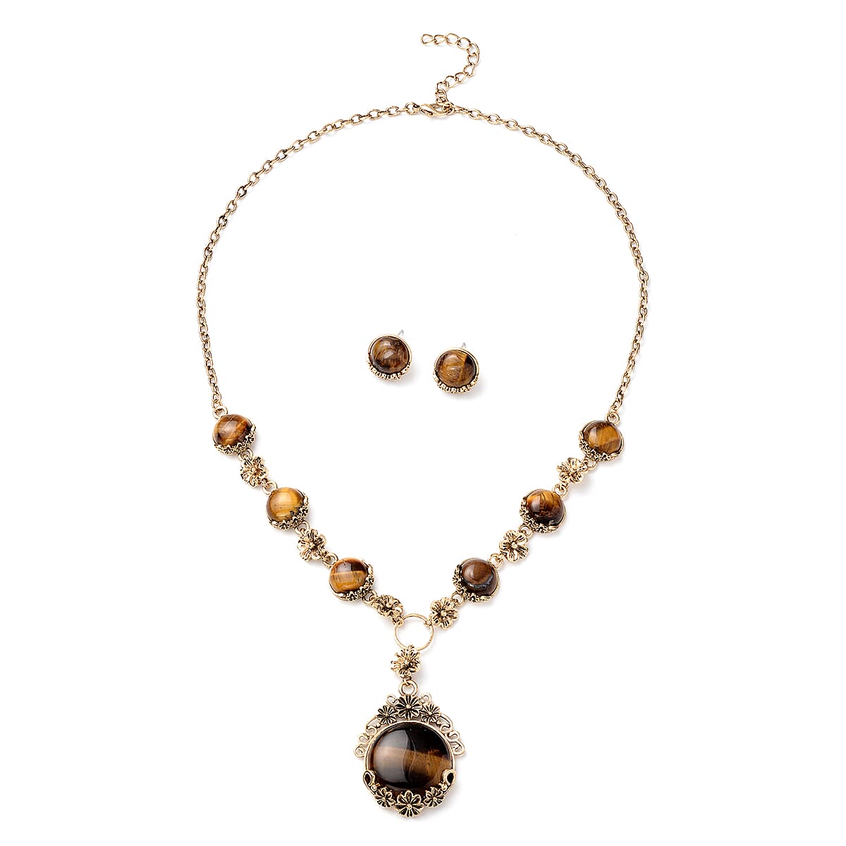 This set of station necklace and stud earrings is the perfect answer for the time-weary question "what should I wear today." You can find flower carvings with daisy flower design charms that add nature's freshness and elegance to the design. This set is an effortless way to rev up your look and something that every woman should own.