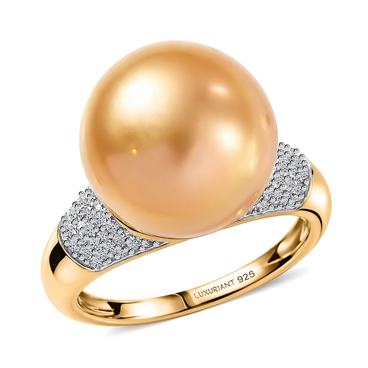 South Sea Golden Cultured Pearl and Luxuriant Lab Grown Diamond G-H SI 0.30 ctw Ring in 18K Vermeil Yellow Gold Over Sterling Silver (Size 6.0)