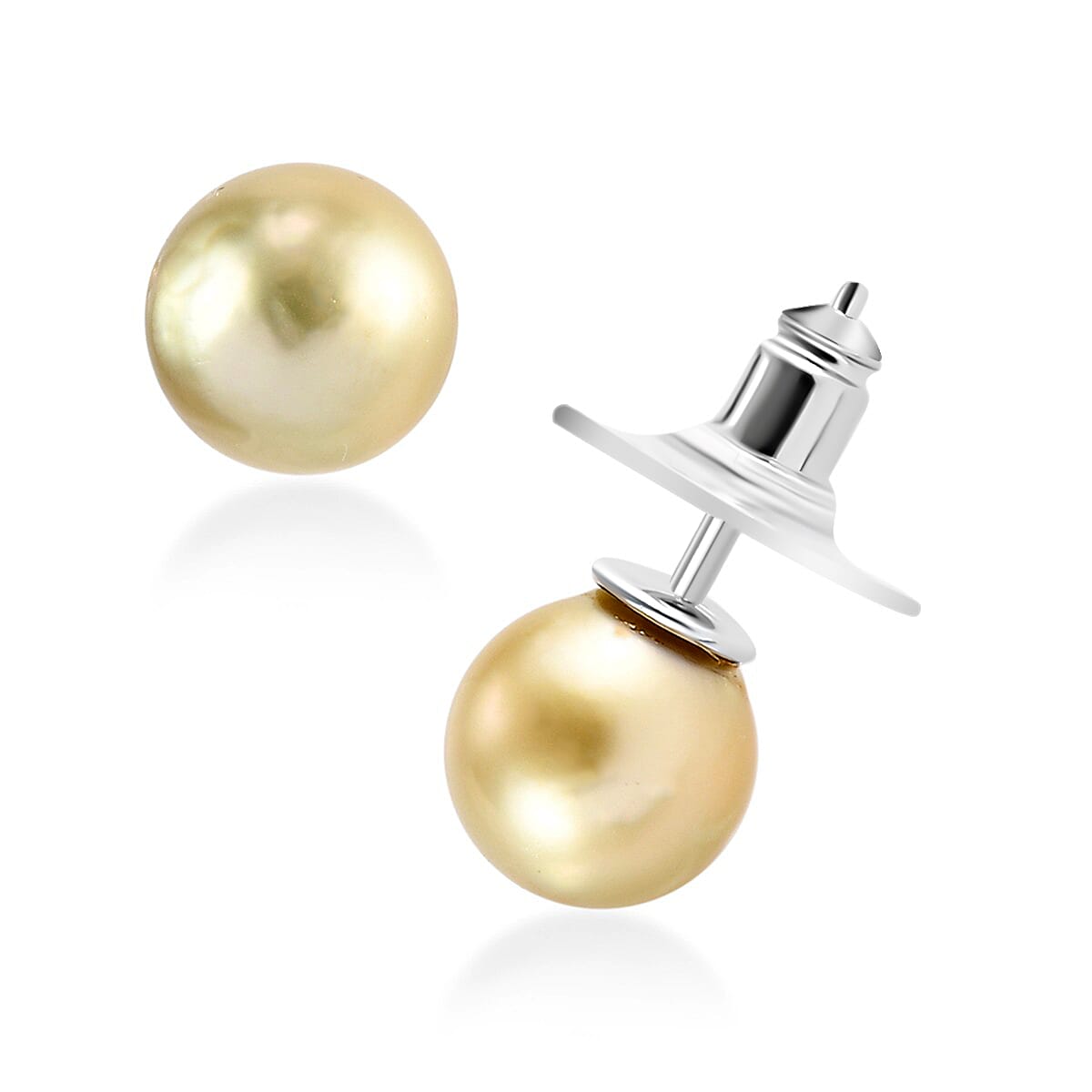 South Sea Golden Cultured Pearl Stud Earrings in Platinum Over Sterling Silver