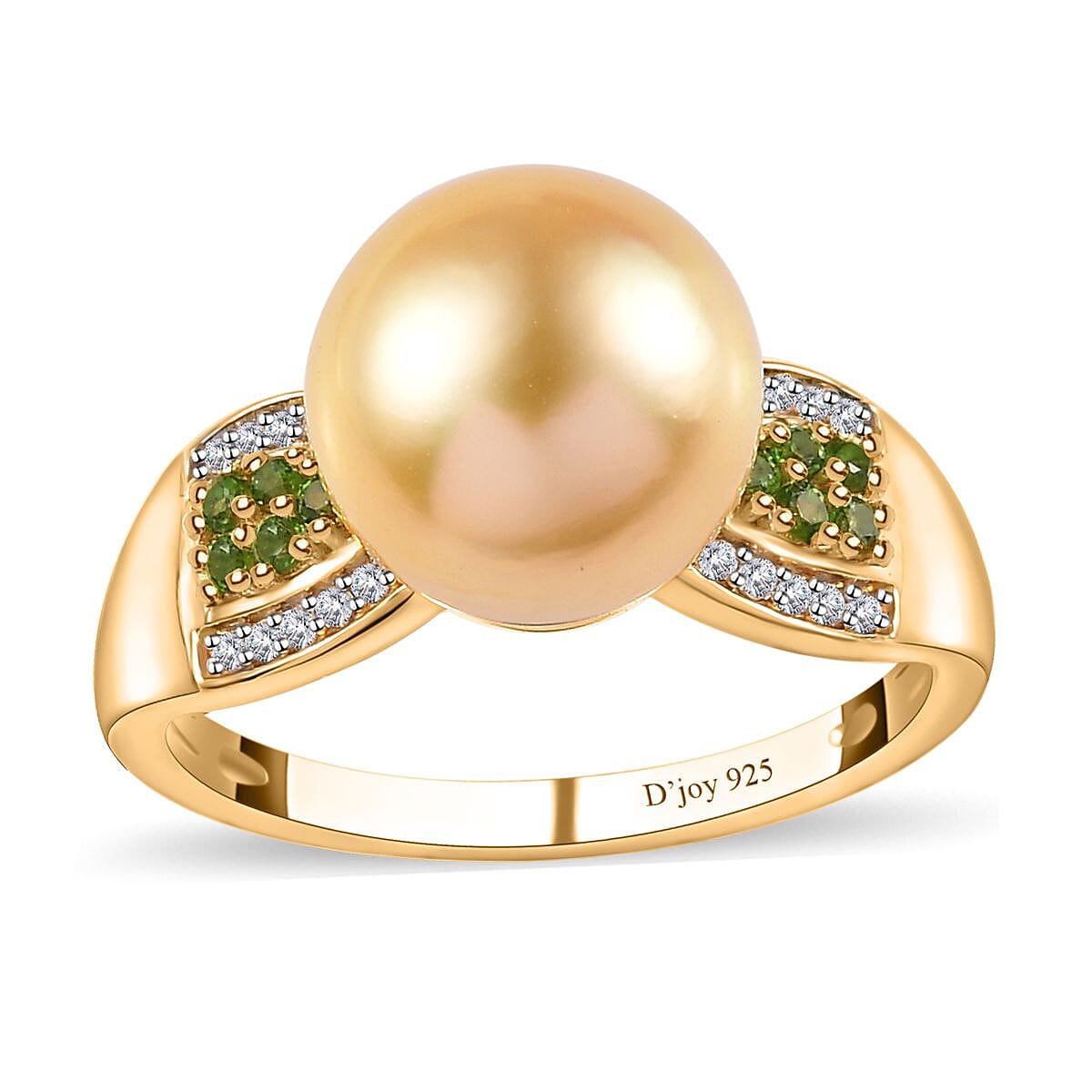 South Sea Golden Pearl 11-12mm and Multi Gemstone Ring in Vermeil Yellow Gold Over Sterling Silver (Size 10.0) 0.35 ctw