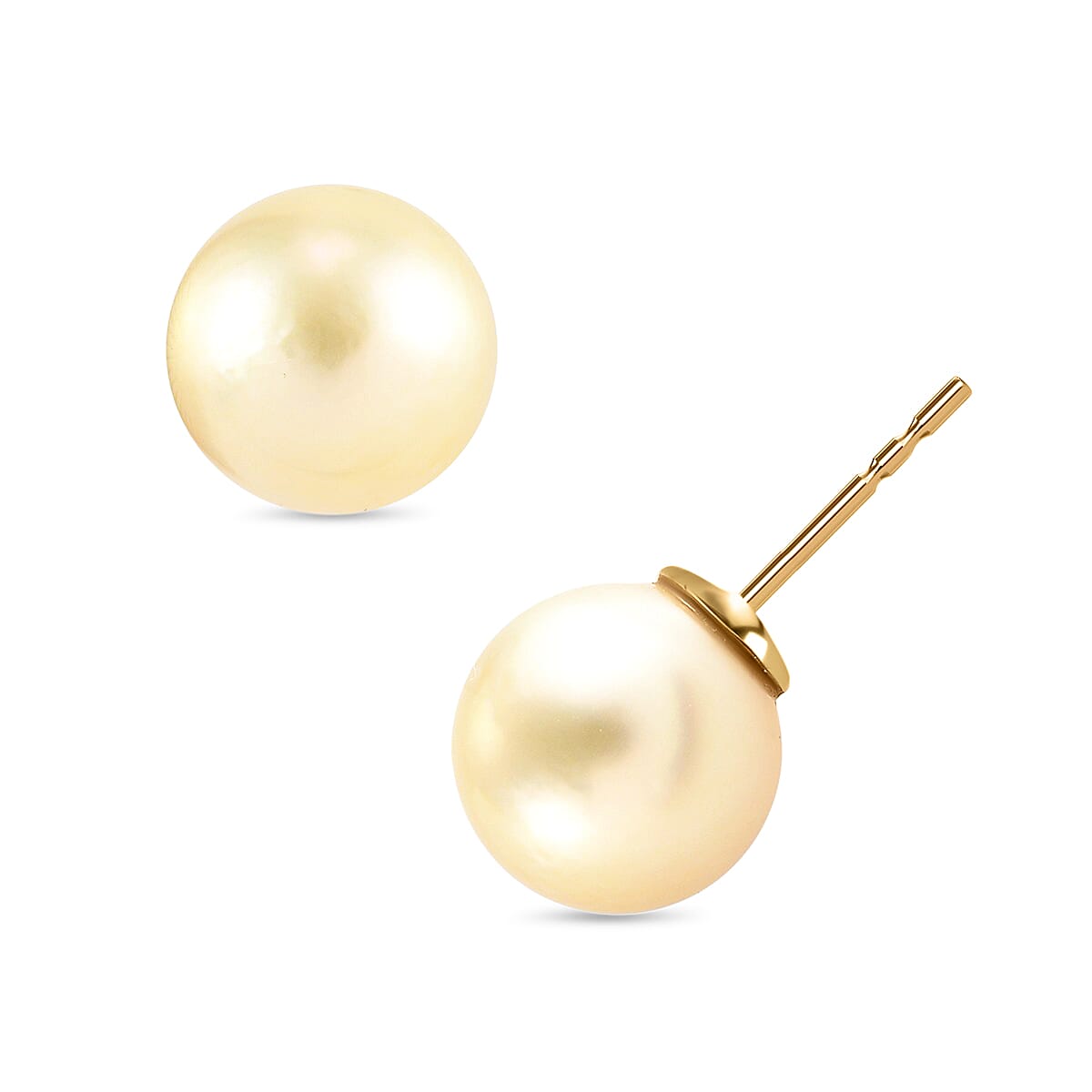 South Sea Pearl 10-12mm Stud Earrings in Vermeil Yellow Gold Over Sterling Silver