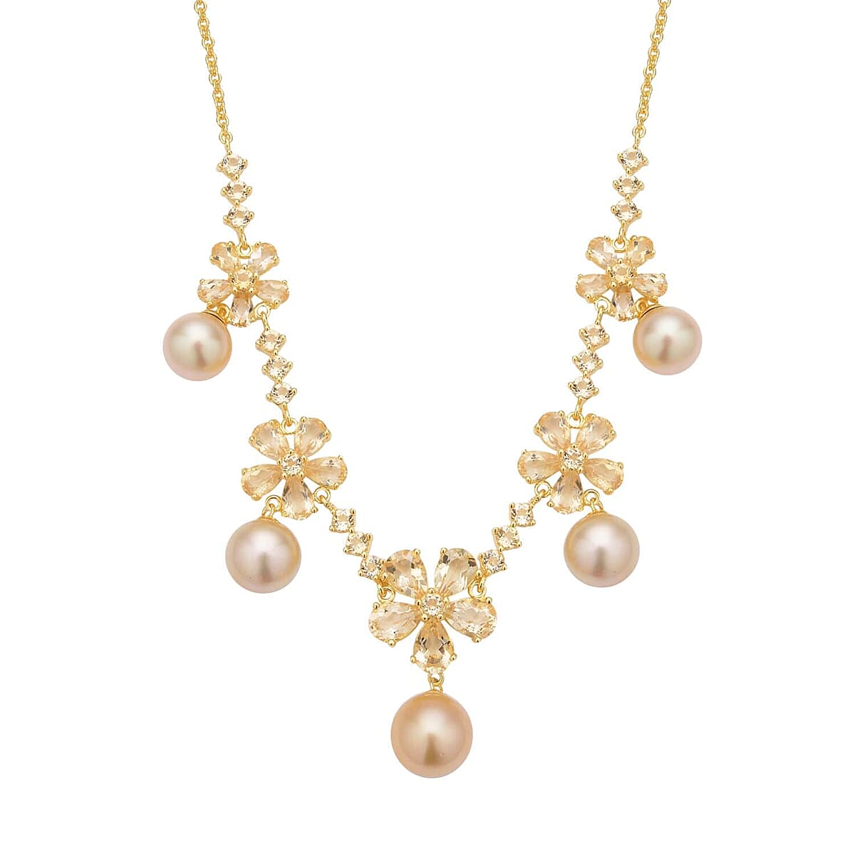 South Sea Pearl and Brazilian Citrine Bib Necklace 16-18 Inches in Vermeil Yellow Gold Over Sterling Silver 10.85 ctw