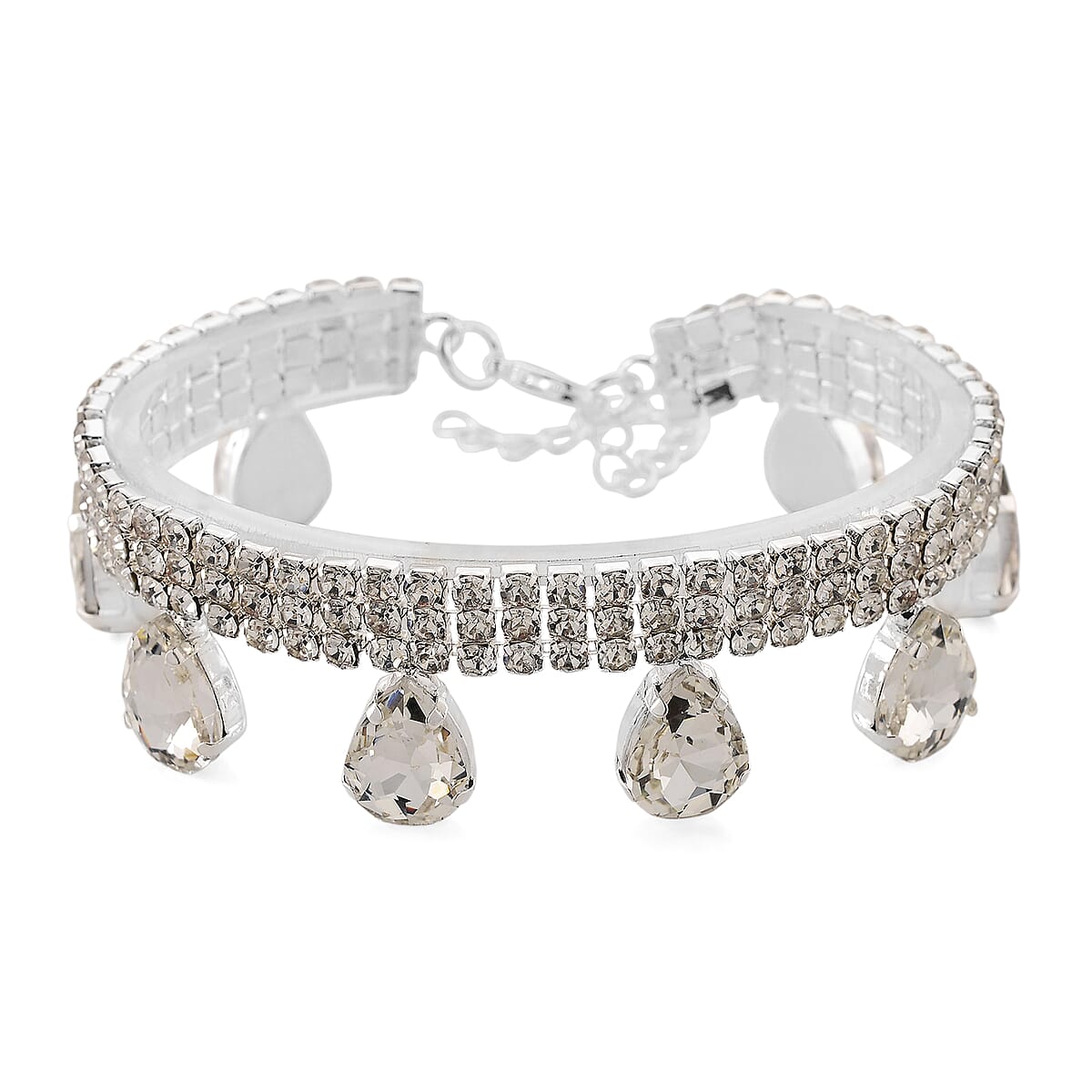 Sparkling Austrian Crystal Dripping Bracelet in Silvertone (7.50-9.50In)