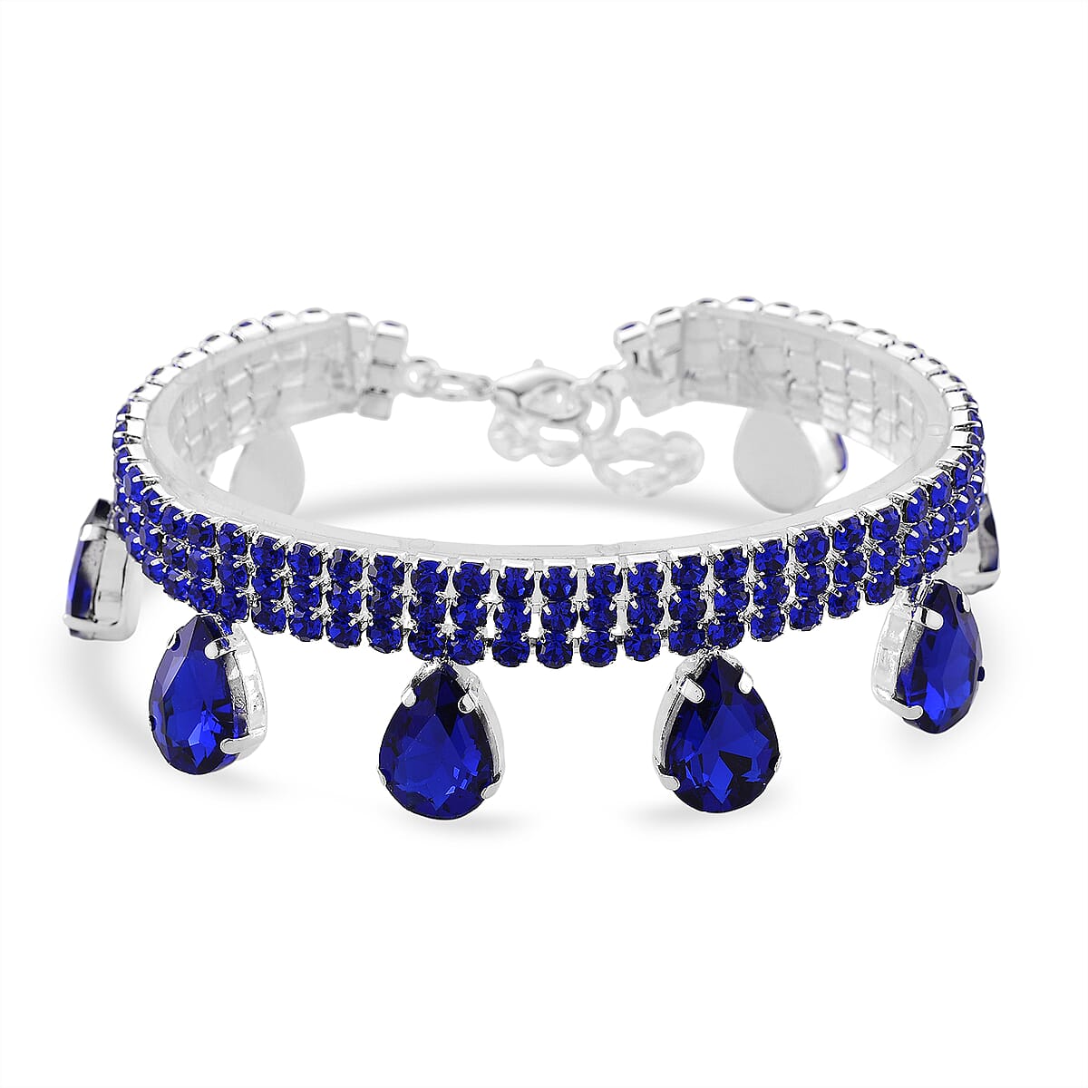 Sparkling Blue Austrian Crystal Dripping Bracelet in Silvertone (7.50-9.50In)